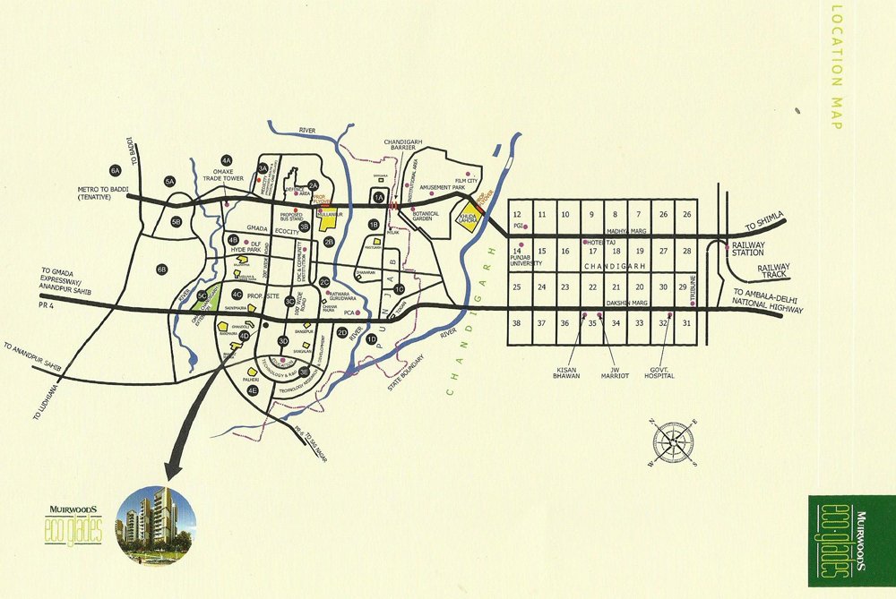 Muirwoods EcoGlades is designed to raise the standards of living with well conceived space that addresses your needs. Located on prime Airport Road within 500 acres Altus Ecocity, Ecoglades is spread into 10 acres with a choice and indulge from conventional housing to lavish penthouses and Concept Villas overlooking green pastures and Shivalik hills.